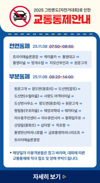 통영 중화항에서 욕지도로 가는 최단거리 여객선